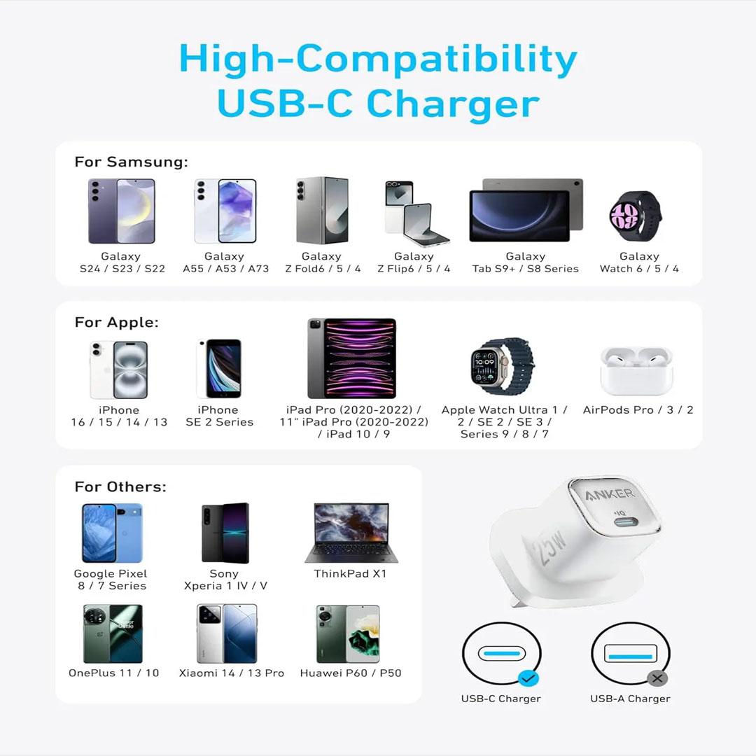 Specification: Anker 25W Charger With USB-C Cable – White B2656K11