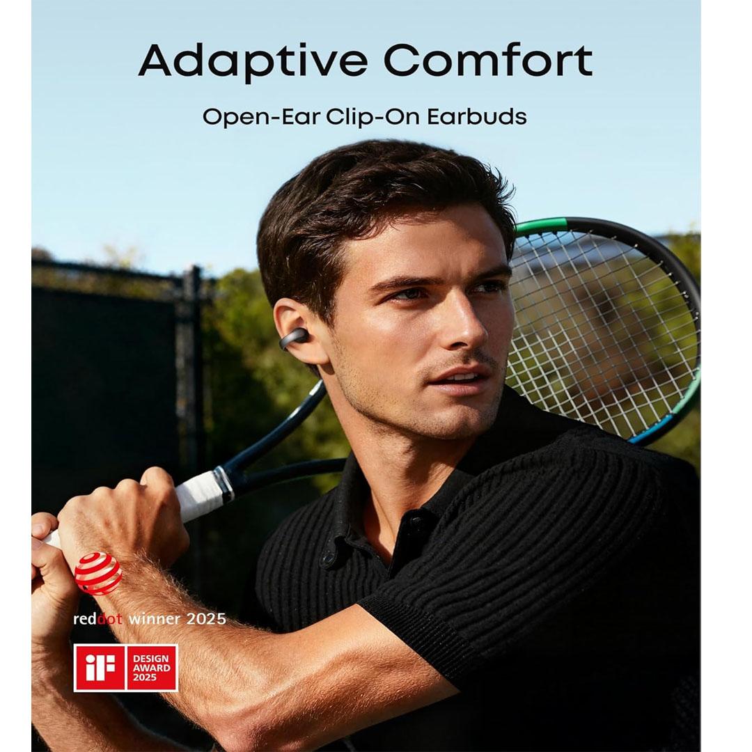 - Flexible, Secure Fit: soundcore AeroClip clip-on earbuds boast an adaptive open-ring design that endures 20,000 bends. Feather-light and flexible, they stay secure for all-day wear.