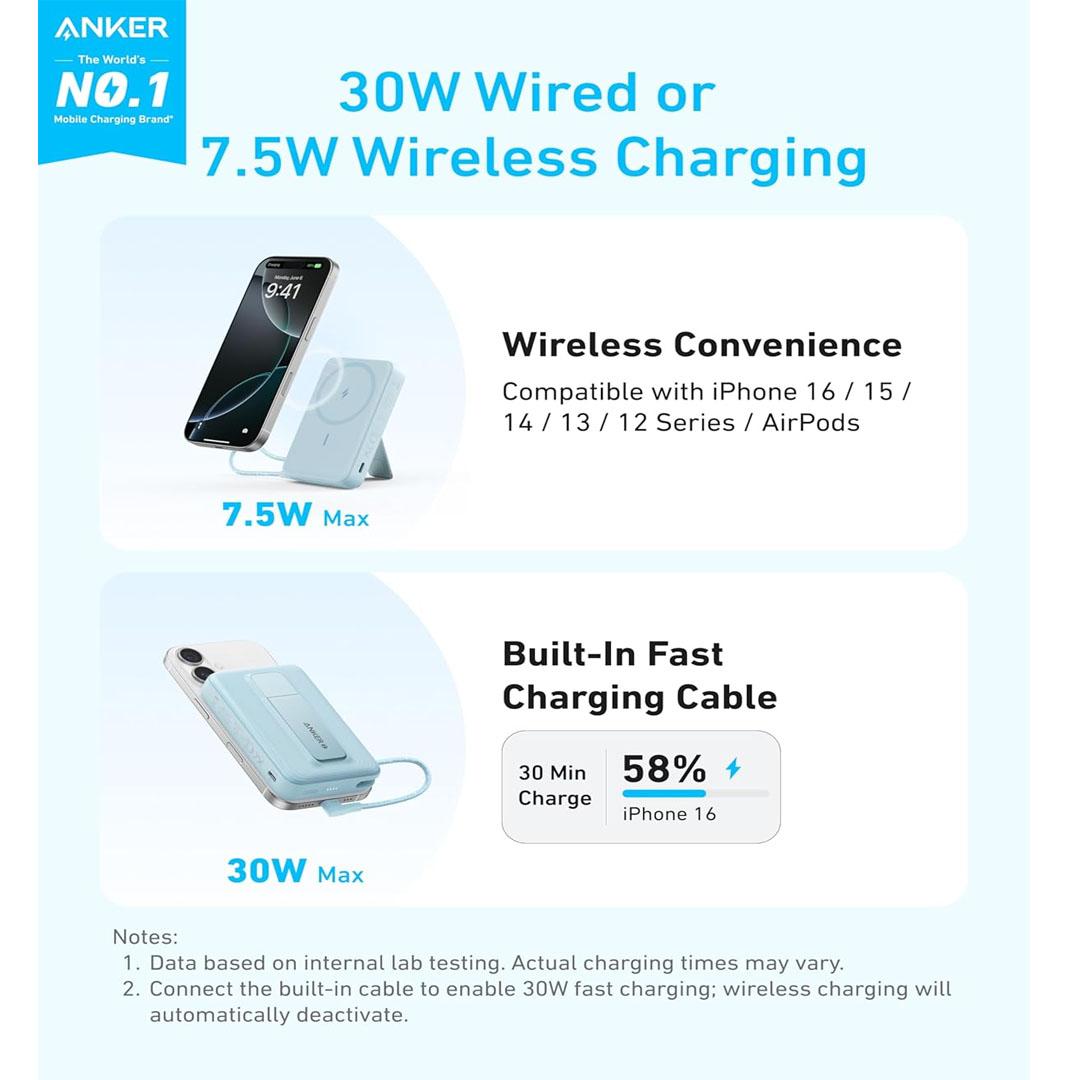 - Wired for Speed, Wireless for Convenience: Maximize charging efficiency with 30W fast charging through a built-in cable, or embrace the ease of 7.5W wireless charging.