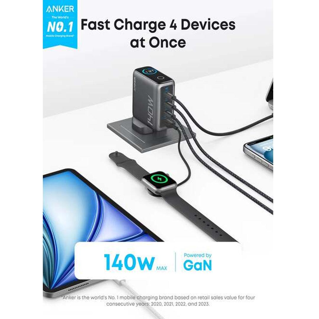 Anker Zolo Charger 140W 4-Ports PD 3.1 With USB-C Cable – Silver B2697k41
