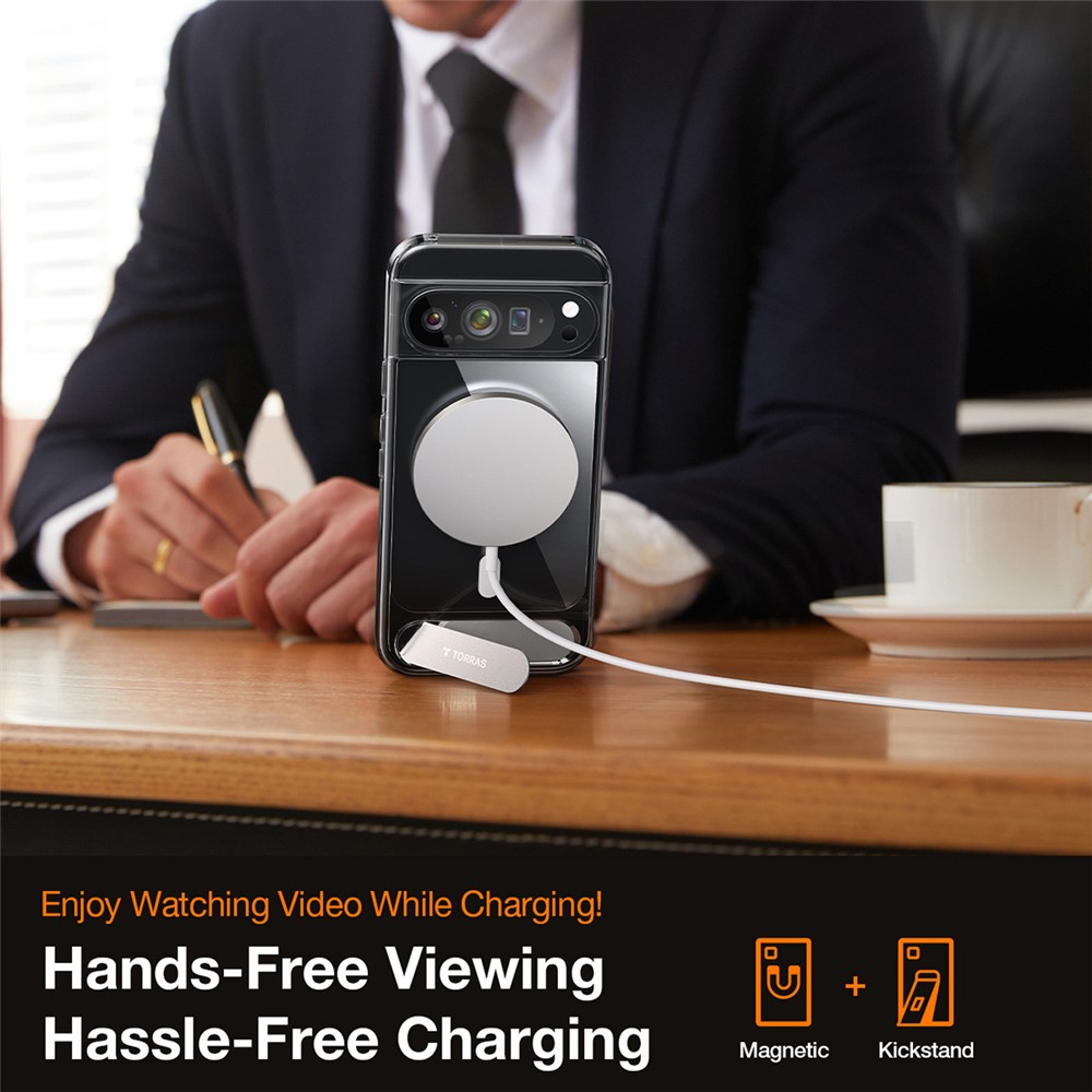 Google Pixel 9 Pro/Pixel 9 TORRAS Kickstand TPU + PC MagSafe Cover – Transparent