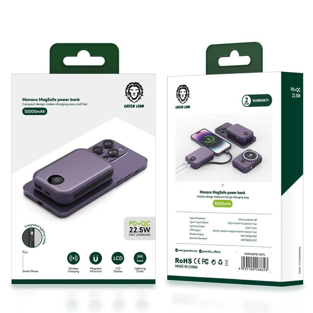 Specification: Green Monaco Magsafe Power Bank 10000mAh PD+QC 22.5W – Black (GNMGMPB10KBK)