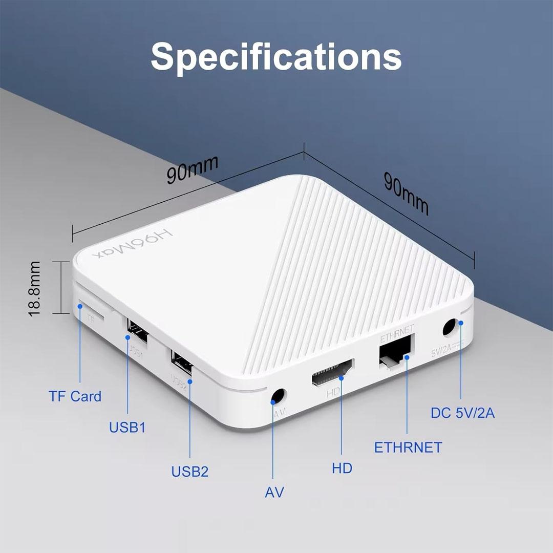 Specification: H96Max 2/16GB Android 14.0 TV Box 4K UK Plug – White
