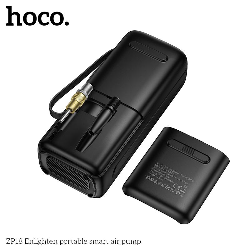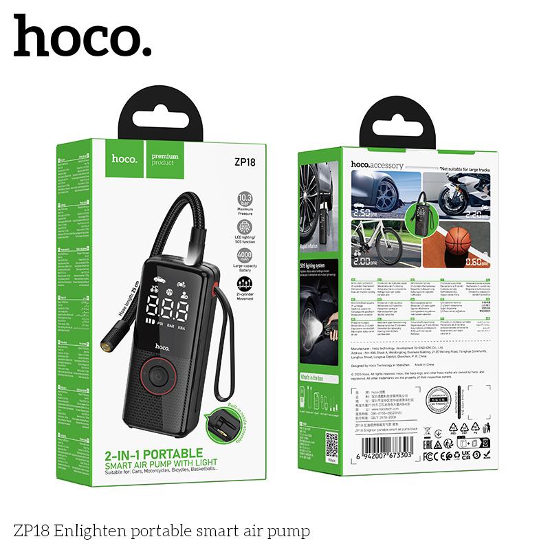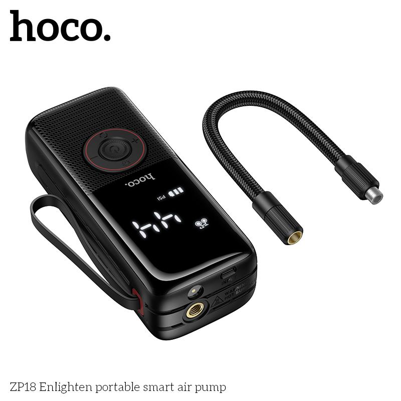 Specification: Hoco ZP18 2-IN-1 Portable Smart Air Pump With Light – Black