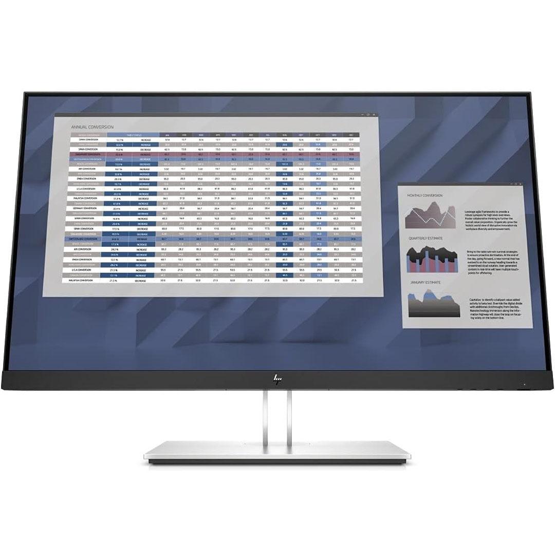 - HP E27 G4 monitor easily navigate documents, spreadsheets and work in multiple applications side by side on 23.8-inch diagonal Full HD screen with vibrant 1920×1080 resolution.