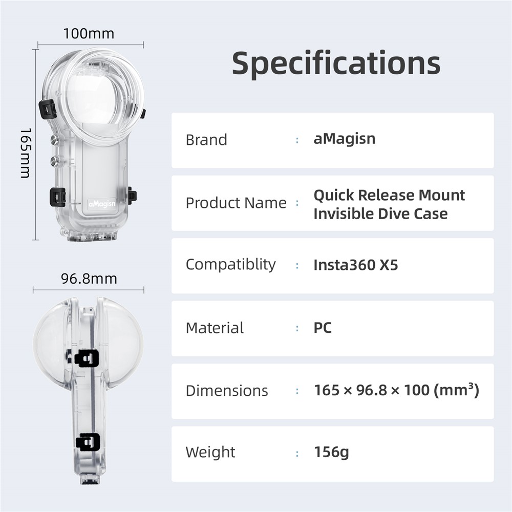 Specification: Insta360 X5 AMAGISN Invisible 60m Diving Case