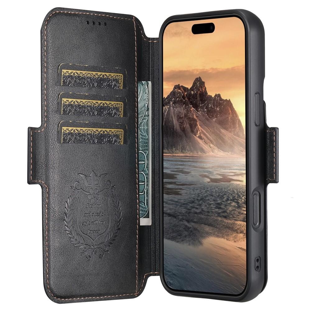 iPhone 16 SUTENI Q-06 Color Splicing Magnetic Detachable Leather Cover – Black