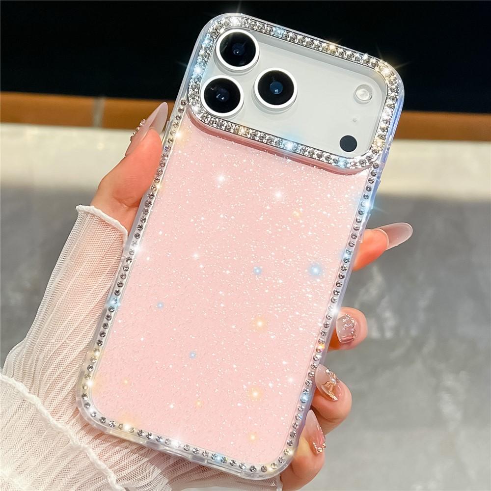 Specification: iPhone 17 Pro Max IMD Rhinestone Edge Glitter TPU + PC Cover – Light Pink