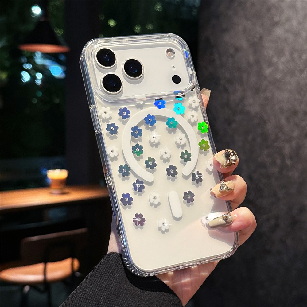 Specification: iPhone 17 Pro Max MagSafe Laser Flower PC + TPU Clear Cover – Cream Flower