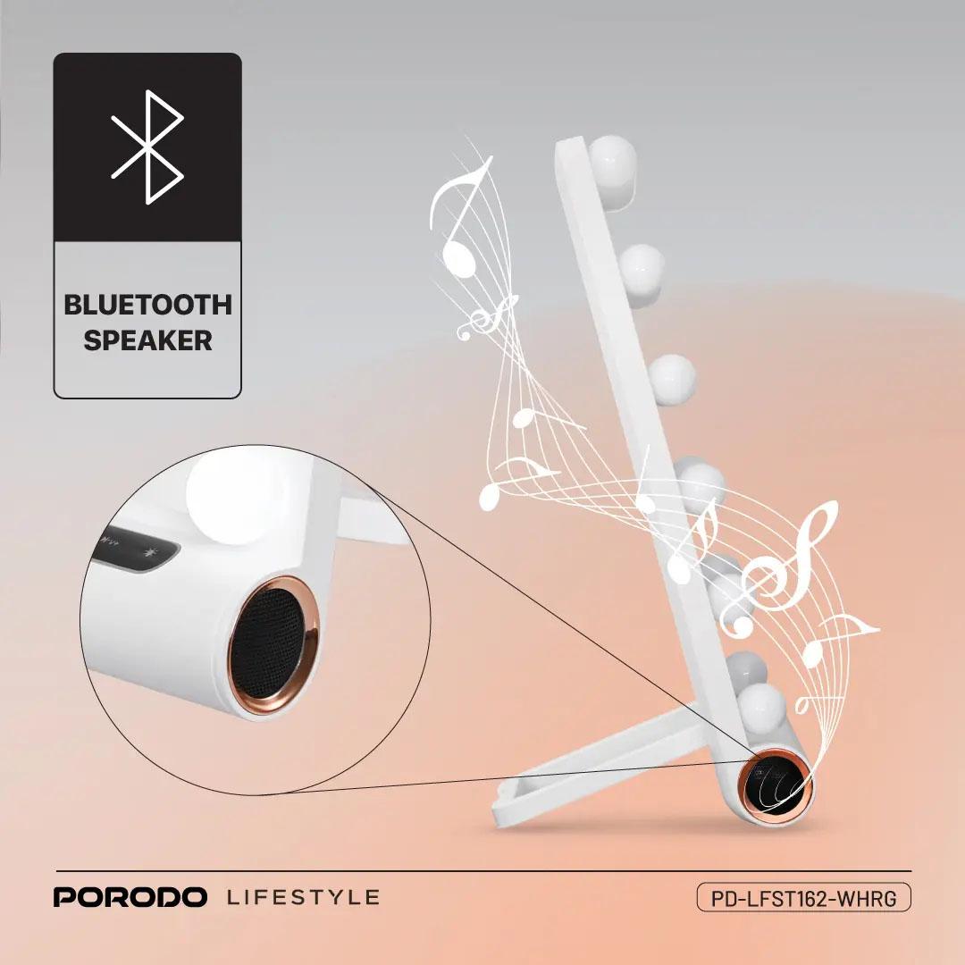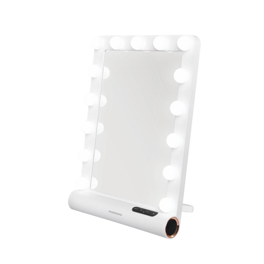 Porodo Lifestyle Hollywood Vanity Lighted Mirror With Speaker – White/Rose Gold PDLFST162WHRG