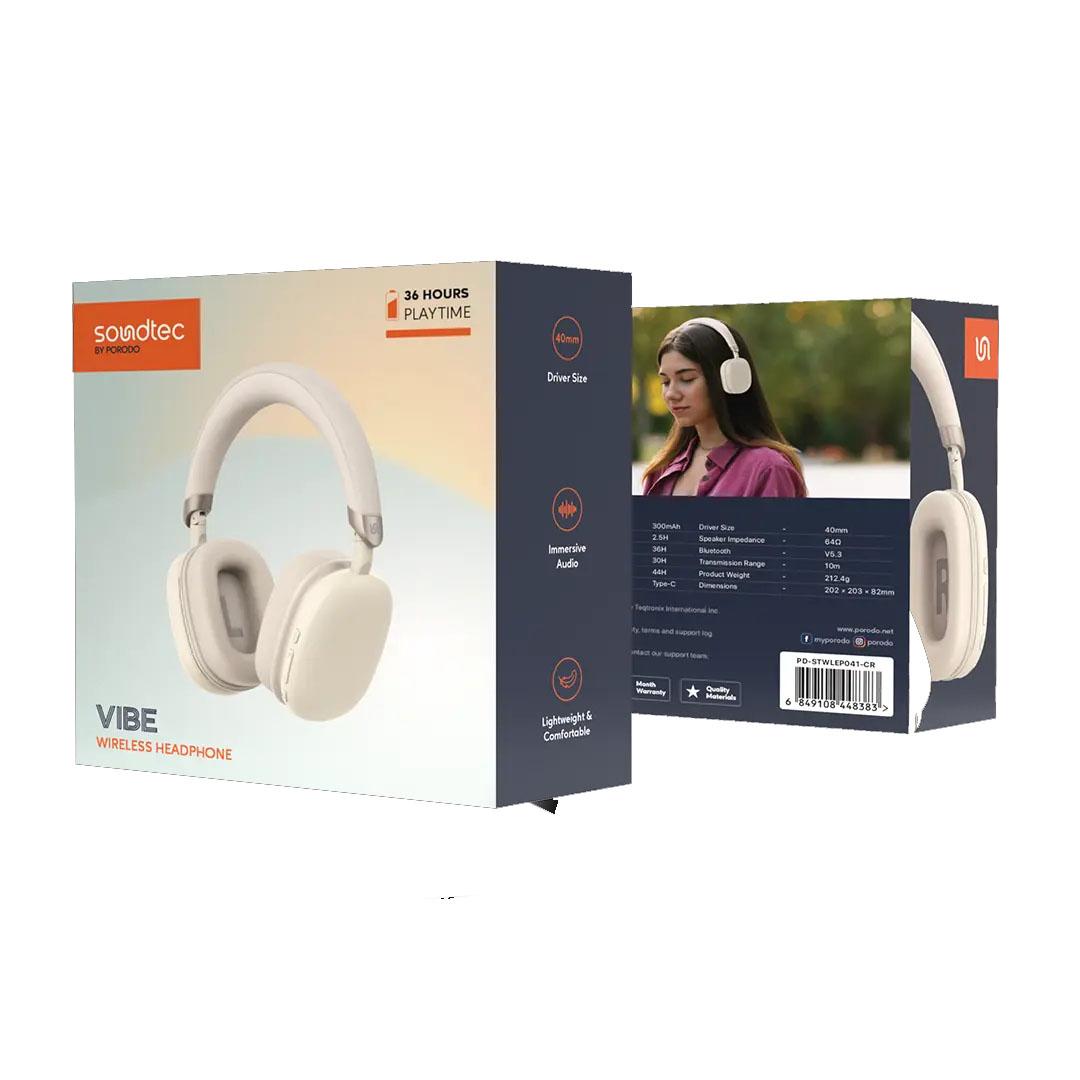 Porodo Soundtec Vibe Wireless Bluetooth Headphone – Cream PDSTWLEP041CR