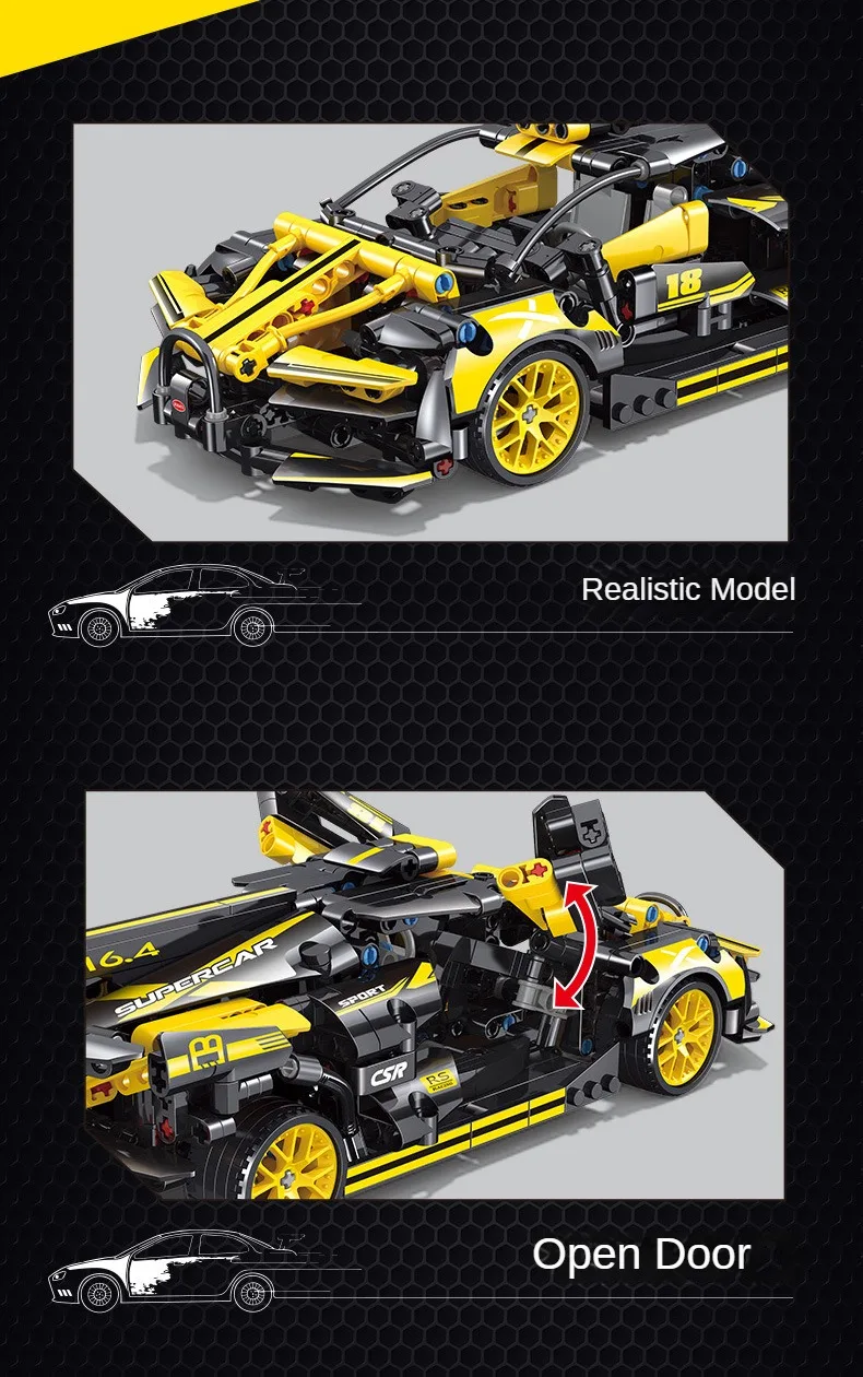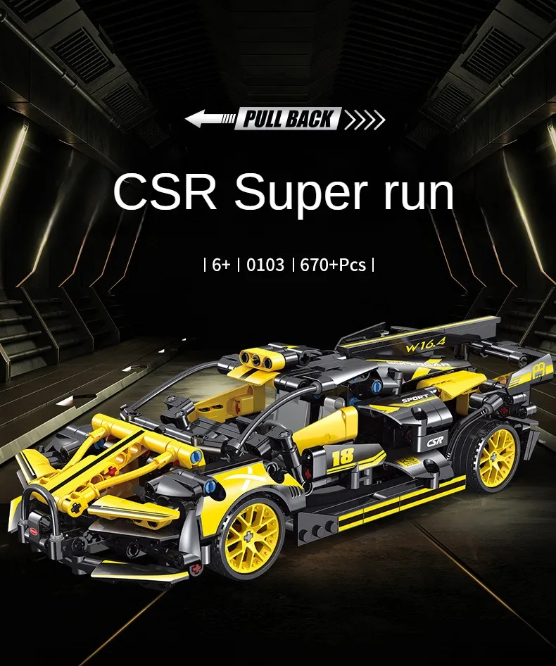 Introducing our latest addition to the world of toys – the Super Car Puzzle Building Block This innovative toy combines the thrill of a supercar with the brain-teasing challenge of a puzzle building block. With cutting-edge Running Technology, this toy car is designed to zoom across any surface effortlessly. Its sleek and aerodynamic design ensures maximum speed and agility, making it the perfect toy for racing enthusiasts. The advanced technology also allows for precise control and maneuverability, providing an exhilarating experience for both kids and adults alike.