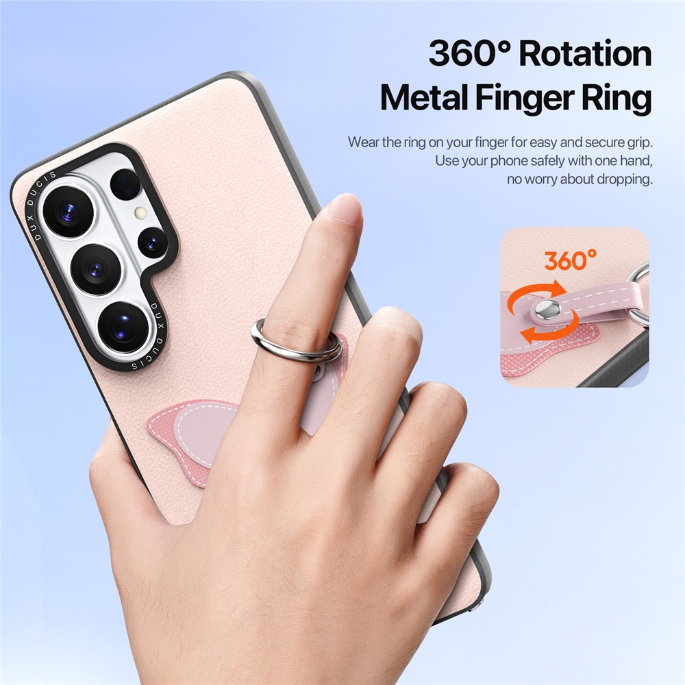 Samsung Galaxy S26 Ultra DUX DUCIS Luvy Series PU Leather Finger Ring/Strap – LightPink & Butterfly
