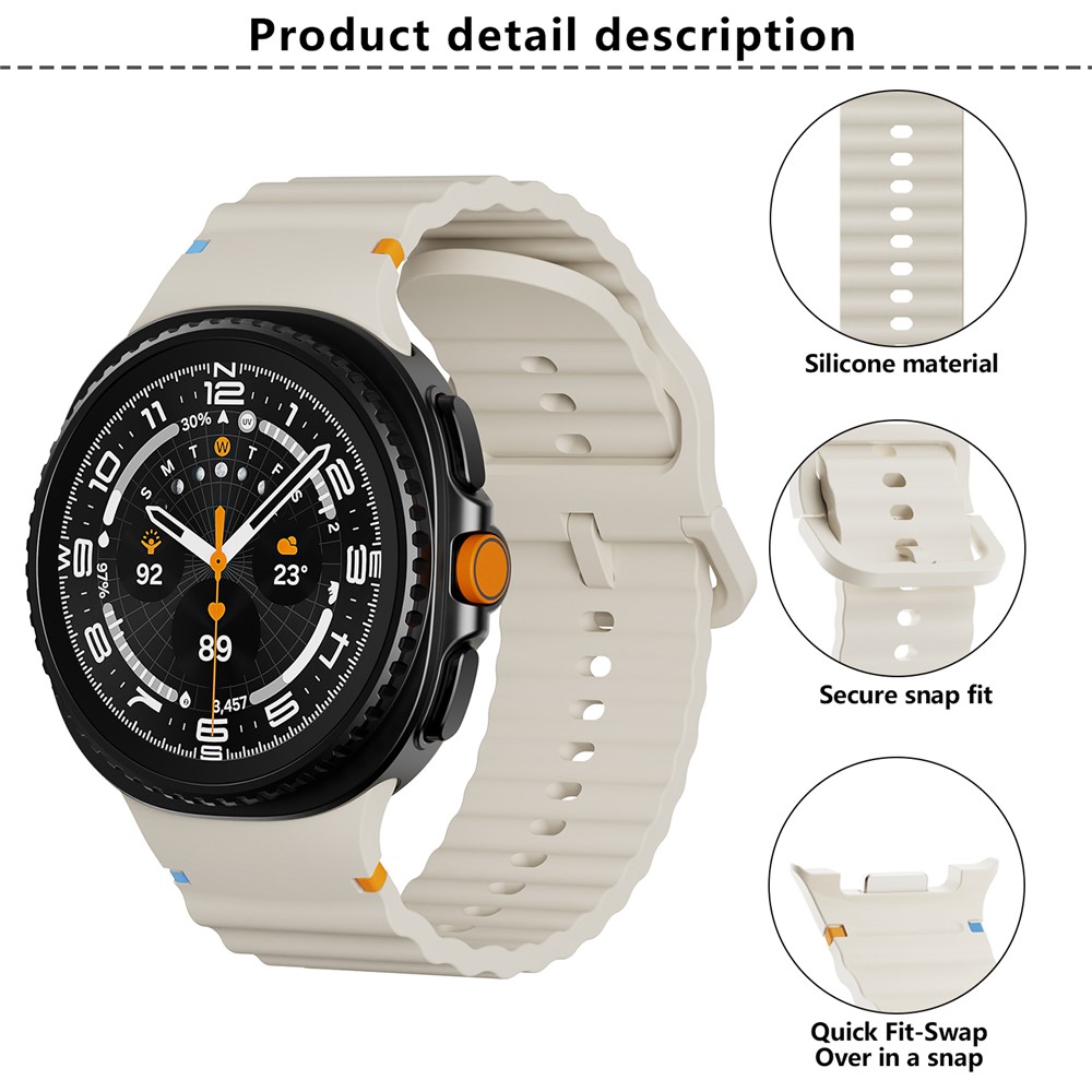 Specification: Samsung Galaxy Watch8 KALEBOL Silicone Watch Band 44mm/40mm/46mm Wave Strap – Beige