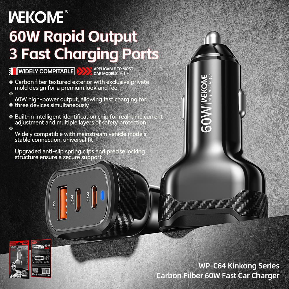 Wekome WP-C64 60W Fast Car Charger Carbon Fiber – Black