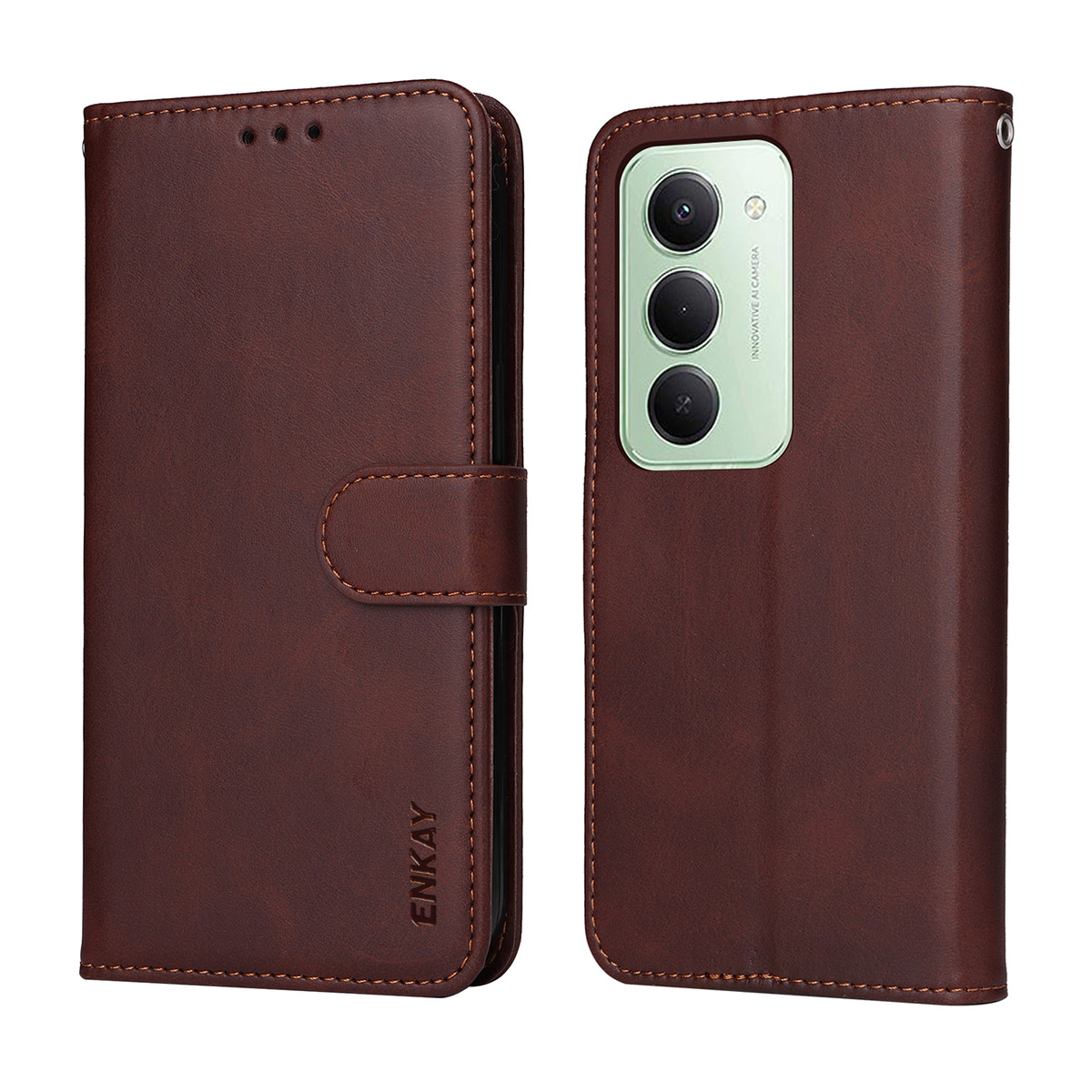 Specification: Xiaomi Redmi 15 5G ENKAY HAT PRINCE Leather Wallet Cover with Tempered Glass – Brown